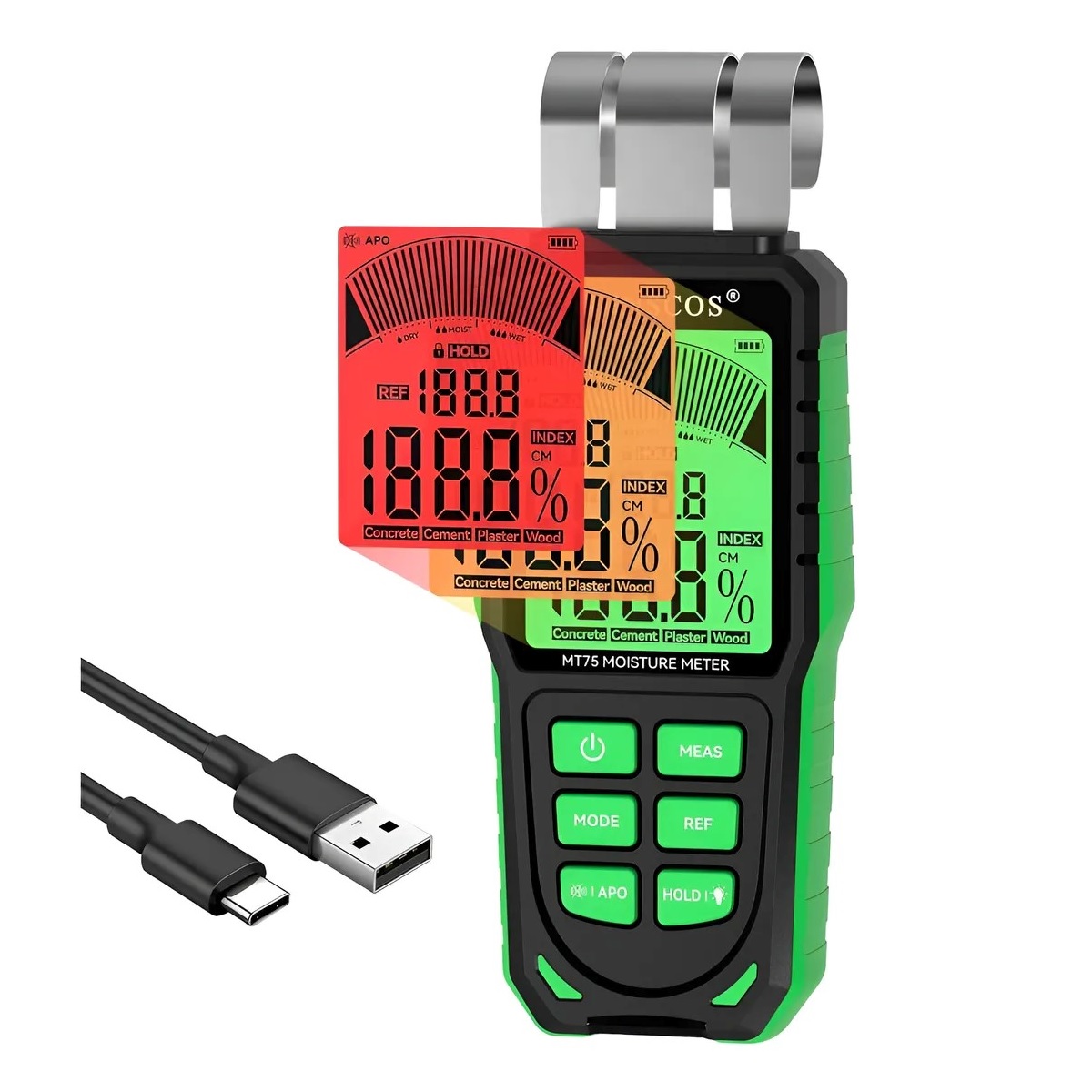 - Detección de humedad no invasiva sin pines: detecta humedad relativa de hasta 1.575 in de profundidad sin dañar alfombras o materiales de construcción. Este medidor de humedad de alfombra identifica rápidamente áreas con niveles elevados de humedad, ayudando a monitorear ambientes interiores de manera efectiva