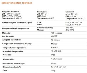 – Conectividad y Ajustes: Incluye conector BNC universal para facilitar la conexión, con compensación de temperatura automática (ATC) y manual (MTC), así como ajustes a estándares USA y NIST según sus necesidades específicas. – Pantalla avanzada: Pantalla iluminada con doble indicación para pH y temperatura, que proporciona una lectura clara y precisa.