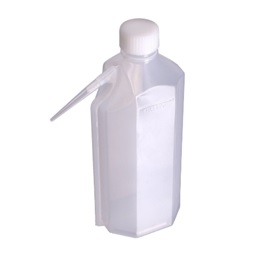 Las botellas de lavado de plástico se suministran en polietileno natural flexible y están equipadas con una gama de cierres de boquilla de polipropileno de cuello ancho a prueba de fugas. El cuello ancho ofrece un llenado fácil y sin derrames, y la boquilla dispensadora moldeada con precisión y ángulo agudo garantiza un chorro consistente que apunta hacia abajo. Las botellas de lavado se suministran en paquetes de cinco envoltorios retráctiles. Todos cuentan con códigos de reciclaje S.P.I en su base. La temperatura máxima del LDPE es de 80 °C. Características técnicas Botellas de lavado de hombro inclinado de boca estrecha